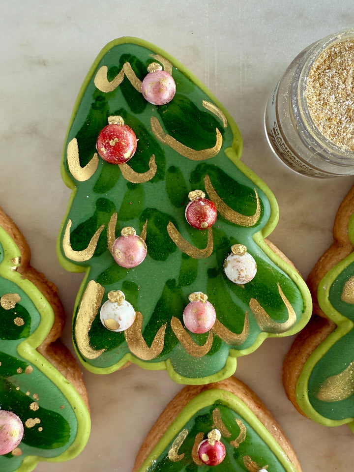 Antique Gold Lustre is a warm, rich gold edible powder with a true metallic finish. This ultra-fine, highly pigmented lustre can be used dry for a soft shimmer or mixed with a few drops of clear alcohol to create a bold metallic paint.