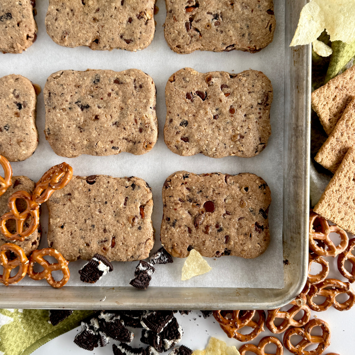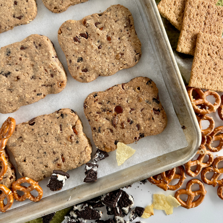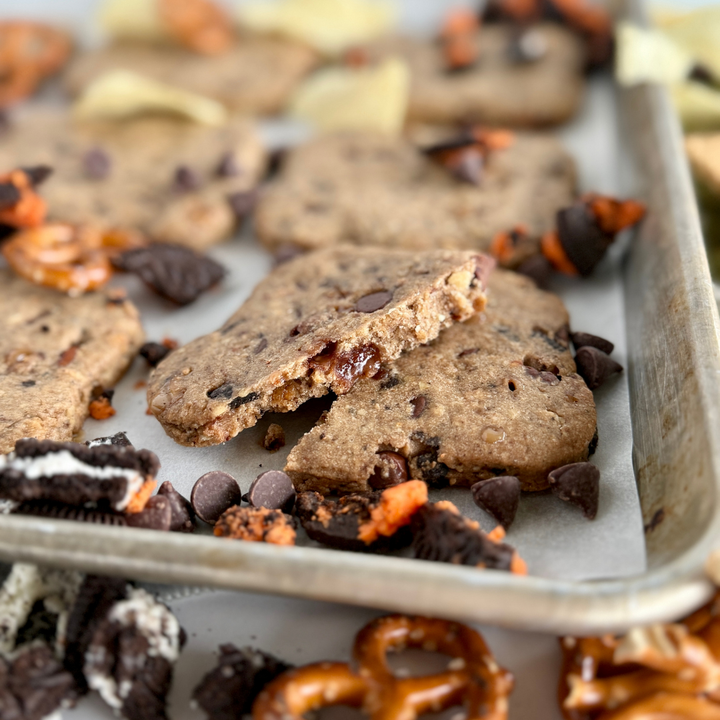 We start with my trusty brown sugar-laced dough that bakes up soft and chewy inside, with just the right amount of structure to hold all the fun. Then comes the best part: a tumble of treasures mixed right in. Think melty chocolate, graham cracker bits, toasty pretzels, buttery toffee, and even potato chips for that salty snap.