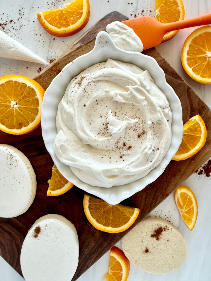 Light in color and silky in texture, this recipe blends warm, gentle spices with fresh, zesty orange for a beautifully balanced finish that feels both comforting and refreshing. It’s easy to mix up, uses super-accessible ingredients, and somehow manages to taste like the holidays and sunshine at the same time.